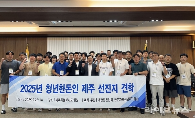대한한돈협회 청년분과위원회(위원장 도영철)는 지난 22일부터 24일까지 2박 3일간 제주도 일원에서 ‘2025 청년한돈인 선진지 견학’을 성황리에 개최했다. 이번 견학에는 전국 각지에서 활동 중인 청년 한돈인 40여 명이 참가하여, 수출 중심의 가공·유통 시스템부터 환경·냄새관리에 이르기까지 선진 양돈기술을 폭넓게 체험하고 상호 의견을 교류하는 뜻깊은 자리를 가졌다.