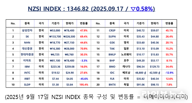 언론 통합 플랫폼이자 인터넷신문사 제보팀장을 운영 중인 더에이아이미디어는 9월 17일 NZSI INDEX 기반 시황 보고서를 발표했다.