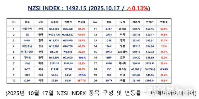 언론 통합 플랫폼이자 인터넷신문사 제보팀장을 운영 중인 더에이아이미디어는 10월 17일 NZSI INDEX 기반 시황 보고서를 발표했다.