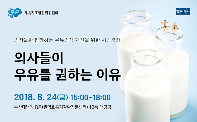 우유자조금관리위원회(위원장 이승호)와 신문 청년의사(대표 양경철)는 오는 24일 부산대병원 권역호흡기질환전문센터에서 ‘의사들과 함께하는 우유인식 개선을 위한 시민강좌’를 개최한다. 객관적이고 신뢰도 높은 전문의의 강연을 통해 평소 소비자들이 갖고 있는 우유 정보의 잘못된 점을 바로잡고, 건강한 인식을 확립시키는 데 큰 의미가 있다.