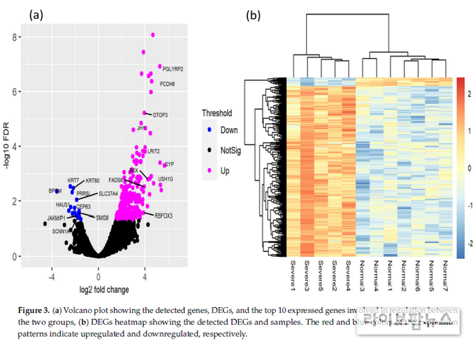 연구진이 가축더위지수에 따른 유전자 발현 양상을 비교한 결과, 심각단계에서 체내 항상성 유지에 관여하는 245개 유전자 발현량이 차이를 보였다. 차이를 보인 유전자는 칼슘 신호 경로, 아데노신3인산(ATP) 대사 과정, 소포체 단백질 처리 등에 주로 관여하는 유전자들이다.