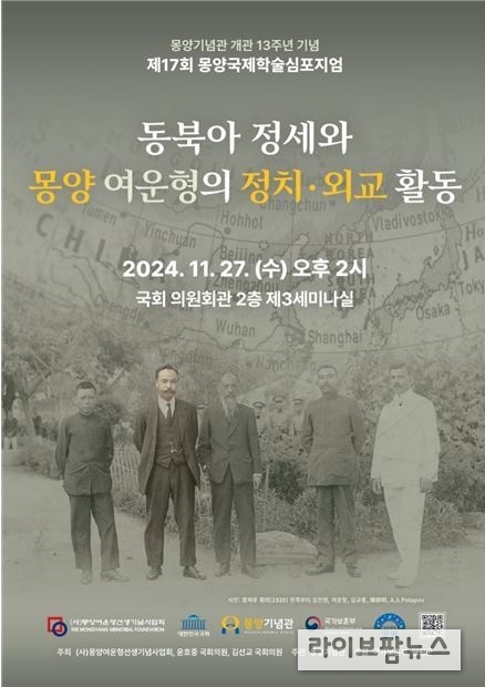 국회 농림축산식품해양수산위원회 소속 김선교 국회의원(국민의힘, 경기 여주시·양평군)은 지난 27일 국회에서「제17회 몽양국제학술심포지엄 ‘동북아 정세와 몽양 여운형의 정치·외교 활동’」을 국회의원 윤호중과 (사)몽양여운형선생기념사업회와 공동주최했다. 몽양기념관(관장 유영표)은 주관, 국가보훈부와 양평군이 후원을 맡았다.
