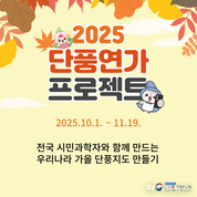 산림청 국립수목원(원장 임영석)은 시민참여형 식물계절 관찰 프로그램 ‘단풍연가 프로젝트’를 오는 10월 1일(수)부터 11월 19일(수)까지 운영한다고 밝혔다. 이번 프로젝트는 지난 25일 개시한 ‘모바일 식물계절관측 플랫폼’을 통해 진행되며, 스마트폰만 있으면 전국 어디에서든 쉽게 단풍의 변화 양상을 관찰하고 기록할 수 있다. 지난 봄 벚나무 개화를 관찰하는 ‘벚꽃엔딩 프로젝트’에 이어 두 번째로 마련된 이번 프로그램은, 집 앞 가로수나 동네 공원은 물론 전국의 단풍 명소 등 어디에서나 자유롭게 참여할 수 있다. 프로그램에서 제공하는 간단한 가이드를 참고해 관찰 기록을 업로드하면 자동으로 참여가 인정된다. 또한 참여자에게는 특별한 선물이 준비되어 있으며, 추첨을 통한 당첨자는 12월 5일(금) 모바일 프로그램 내 이벤트 게시판에서 발표할 예정이다. 국립수목원은 이번 프로젝트가 국민이 직접 생물의 계절 변화를 관찰하고 기록하는 즐거움을 느끼는 동시에, 기후변화 및 산림생태 연구에도 소중한 기여가 되기를 기대하고 있다. 신현탁 국립수목원 산림생물보전연구과장은 “단풍연가 프로젝트는 국민 모두가 가을 단풍을 즐기면서 동시에 기후변화 연구에도 함께할 수 있는 뜻깊은