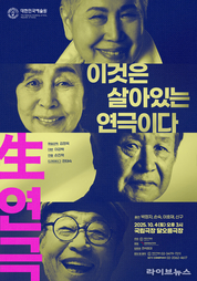 대한민국예술원(회장 신수정, 이하 예술원)은 10월 4일(토) 15시, 국립극장 달오름극장에서 ‘生연극-이것은 살아있는 연극이다’를 개최한다. 예술원에서는 연극·영화·무용분과 회원의 예술창작 활동을 진흥하고, 국민들에게 폭넓은 문화예술을 향유할 수 있는 기회를 제공하기 위해 분과별 회원들의 연극공연, 무용공연, 영화 회고전 등을 매년 순차적으로 개최하고 있다. 올해는 우리나라를 대표하는 배우이자 대한민국예술원 회원인 박정자, 손숙, 이호재, 신구 등 4명이 평생을 무대에서 살아오며 느낀 소회를 담담하면서도 생생하게 풀어내며 이야기하는 자리를 마련하였다. 네 명의 배우들이 연극을 구성하는 세 가지 요소인 배우, 관객, 무대를 각각 1, 2, 3부로 나누어 각자가 오랜 세월 동안 경험하고 느낀 것을 털어놓는다. 1부에서는 연극을 처음 하게 된 계기와 각자가 가장 인상 깊게 연기하거나 스스로 대표작이라고 일컬을 만한 작품의 한 대목을 선보이며 무대 위의 피아노 라이브 연주에 맞춰 흥겹게 춤을 추기도 하고, 격렬하게 재연하기도 하며 인간의 기본적인 감정인 희로애락을 펼쳐 보인다. 관객에 대해 이야기하는 2부에서는 탄탄한 내공을 자랑하는 관록의 배우들이지만 유일하게