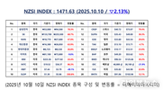 언론 통합 플랫폼이자 인터넷신문사 제보팀장을 운영 중인 더에이아이미디어는 10월 10일 NZSI INDEX 기반 시황 보고서를 발표했다. [편집자주] NZSI INDEX는 왜곡된 시장 정보에서 벗어나, 개인 투자자를 위한 공정하고 실질적인 투자 기준을 제시합니다. NZSI INDEX에는 미래를 설계할 수 있는 자본시장의 가능성이 담겨 있습니다. ★ 지수변경 : 1,000을 기준으로 종목 기여도 동일 반영 ★ 기 준 가 : 2024. 12. 20 / 1차 개편 : 2025. 04. 01 ★ 평가기준 : 20개 종목 X 5개 항목 (건전성, 안전성, 성장성, 위험도, 기대값) X 10등급 (A3 ~ D) 2025년 10월 10일, 국내 증시는 긴 추석 연휴를 마치고 긍정적인 반등세를 보였다. 코스피 지수는 전 거래일 대비 1.73% 상승한3,610.60포인트, 코스닥 지수는 0.61% 오른 859.49포인트로 장을 마쳤다. 거래대금은 코스피 약 11조 1천억 원, 코스닥 약 6조 7천억 원 수준으로 전일 대비 증가한 흐름이었고, 시가총액은 코스피 2,957조 1천억 원, 코스닥 446조 2천억 원으로 집계되었다. 미국 뉴욕 증시는 크게 흔들렸다. 다우존스 산업평