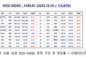 언론 통합 플랫폼이자 인터넷신문사 제보팀장을 운영 중인 더에이아이미디어는 10월 16일 NZSI INDEX 기반 시황 보고서를 발표했다. [편집자주] NZSI INDEX는 왜곡된 시장 정보에서 벗어나, 개인 투자자를 위한 공정하고 실질적인 투자 기준을 제시합니다. NZSI INDEX에는 미래를 설계할 수 있는 자본시장의 가능성이 담겨 있습니다. ★ 지수변경 : 1,000을 기준으로 종목 기여도 동일 반영 ★ 기 준 가 : 2024. 12. 20 / 1차 개편 : 2025. 04. 01 ★ 평가기준 : 20개 종목 X 5개 항목 (건전성, 안전성, 성장성, 위험도, 기대값) X 10등급 (A3 ~ D) 2025년 10월 16일, 코스피 지수는 전 거래일 대비 2.49% 오른 3,748.37포인트로 마감했다. 코스닥 지수 역시 0.08% 상승한865.41포인트로 거래를 마치며, 양대 시장 모두 상승세를 보였다. 거래대금은 코스피 약 11조 2천억 원, 코스닥 약 6조 8천억 원으로 전일과 유사했다. 시가총액은 코스피 3,068조 8천억 원, 코스닥 449조 5천억 원으로 집계됐다. 이날 코스피 상승은 외국인 매수세가 주도했다. 반도체, 자동차, 조선 등 수출 주