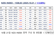 언론 통합 플랫폼이자 인터넷신문사 제보팀장을 운영 중인 더에이아이미디어는 10월 21일 NZSI INDEX 기반 시황 보고서를 발표했다. [편집자주] NZSI INDEX는 왜곡된 시장 정보에서 벗어나, 개인 투자자를 위한 공정하고 실질적인 투자 기준을 제시합니다. NZSI INDEX에는 미래를 설계할 수 있는 자본시장의 가능성이 담겨 있습니다. ★ 지수변경 : 1,000을 기준으로 종목 기여도 동일 반영 ★ 기 준 가 : 2024. 12. 20 / 1차 개편 : 2025. 04. 01 ★ 평가기준 : 20개 종목 X 5개 항목 (건전성, 안전성, 성장성, 위험도, 기대값) X 10등급 (A3 ~ D) 2025년 10월 21일, 국내 증시는 상승세를 이어가며도 조심스러운 흐름을 보였다. 코스피 지수는 전 거래일 대비 0.24% 오른3,823.84포인트로 마감했고, 코스닥 지수는 0.37% 하락한 872.50포인트로 거래를 마쳤다. 거래대금은 코스피 약 11조 3천억 원, 코스닥 약 6조 8천억 원으로 전일 대비 소폭 증가했다. 시가총액은 각각 3,132조 7천억 원(코스피), 453조 3천억 원(코스닥)으로 집계됐다. 코스피는 3,800선을 유지하며 견조한 상