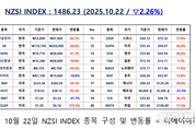 언론 통합 플랫폼이자 인터넷신문사 제보팀장을 운영 중인 더에이아이미디어는 10월 22일 NZSI INDEX 기반 시황 보고서를 발표했다. [편집자주] NZSI INDEX는 왜곡된 시장 정보에서 벗어나, 개인 투자자를 위한 공정하고 실질적인 투자 기준을 제시합니다. NZSI INDEX에는 미래를 설계할 수 있는 자본시장의 가능성이 담겨 있습니다. ★ 지수변경 : 1,000을 기준으로 종목 기여도 동일 반영 ★ 기 준 가 : 2024. 12. 20 / 1차 개편 : 2025. 04. 01 ★ 평가기준 : 20개 종목 X 5개 항목 (건전성, 안전성, 성장성, 위험도, 기대값) X 10등급 (A3 ~ D) 2025년 10월 22일, 국내 증시는 연이은 상승 랠리를 이어가며 연중 최고 수준으로 치솟았다. 코스피 지수는 전 거래일 대비 1.56% 오른 3,883.68포인트로 마감했고, 코스닥 지수는 0.76% 상승한 879.15포인트를 기록했다. 거래대금은 코스피 약 11조 3천억 원, 코스닥 약 6조 8천억 원으로 전일 대비 소폭 증가했으며, 시가총액은 각각 3,179조 7천억 원(코스피), 453조 9천억 원(코스닥)으로 집계됐다. 지수는 불과 일주일 만에 3,8