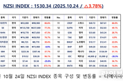 언론 통합 플랫폼이자 인터넷신문사 제보팀장을 운영 중인 더에이아이미디어는 10월 24일 NZSI INDEX 기반 시황 보고서를 발표했다. [편집자주] NZSI INDEX는 왜곡된 시장 정보에서 벗어나, 개인 투자자를 위한 공정하고 실질적인 투자 기준을 제시합니다. NZSI INDEX에는 미래를 설계할 수 있는 자본시장의 가능성이 담겨 있습니다. ★ 지수변경 : 1,000을 기준으로 종목 기여도 동일 반영 ★ 기 준 가 : 2024. 12. 20 / 1차 개편 : 2025. 04. 01 ★ 평가기준 : 20개 종목 X 5개 항목 (건전성, 안전성, 성장성, 위험도, 기대값) X 10등급 (A3 ~ D) 2025년 10월 24일, 국내 증시는 다시 한 번 폭발적인 상승세를 보였다. 코스피 지수는 전 거래일 대비 2.50% 오른 3,941.59포인트로 마감하며 4,000선 돌파를 목전에 두었고, 코스닥 지수는 1.27% 상승한 883.08포인트에서 거래를 마쳤다. 거래대금은 코스피 약 11조4천억 원, 코스닥 약 6조 8천억 원으로 전일보다 소폭 증가했으며, 시가총액은 각각 3,225조 5천억 원(코스피), 459조 1천억 원(코스닥)으로 집계됐다. 이날 상승은