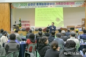 한국후계농업경영인 순창군연합회(회장 한태상)는 지난 4일 순창군 장애인체육관에서 ‘2025년 가족 한마음대회’를 개최했다. 이번 행사에는 최영일 순창군수를 비롯해 손종석 군의회 의장과 의원, 지역 기관단체장, 농업경영인 가족 등 300여 명이 참석해 자리를 빛냈다. 이번 행사에서는 1부에 최영일 군수의 특강 및 표창패 수여, 기념사 순으로 진행되었으며, 2부에서는 후계농업경영인 장기자랑 및 경품추천 등으로 이어졌다. 특히 1부에서 강연자로 직접 나선 최 군수는 ‘돈 버는 농업’을 주제로 순창군의 주요 농업정책을 소개하며 현장의 관심을 모았다. 최 군수는 “순창군은 현재 군비직불금 지원, 농가 소득 기반 확대, 생산비 절감을 위한 다양한 보조사업을 통해 농가의 실질적 수익 향상을 도모하고 있다”며, “또한 인구 감소와 고령화로 인한 노동력 부족 문제는 외국인 계절근로자 도입, 농기계 임대사업 확대, 대형 농기계 보조사업 등을 통해 영농 기계화를 적극 추진하고 있다”고 설명했다. 이어 최 군수는 농어촌 기본소득 국가 공모사업의 재원 조달 계획과 사용처, 선순환 경제모델 등을 소개하며 “이번 성과는 지난 3년간의 철저한 준비와 지속적인 노력의 결과”라며 “앞으로