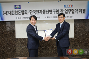 대한한돈협회(회장 하태식)와 한국전자통신연구원 SDF융합연구단(단장 유한영)은4일 서울 서초동 소재 대한한돈협회 사무실에서 가축 질병 관리 및 스마트축사 통합시스템 개발을 위한 협력체계 구축 업무협약을 체결했다. 하태식 회장은 이날 협약식에서 “축산업 발전을 위해 국내 정보통신분야 연구기관 중 가장 대표적인 기관의 연구진이 합심하여 ICT를 접목한 관리방안을 마련한다는데 큰 의의가 있다”고 밝히고, “양 기관이 상호 협력하여 대한민국 축산업 이 한 단계 더욱 발전하는 계기를 마련하자”고 말했다. SDF융합연구단 유한영 단장은 “한국전자통신연구원(ETRI)는 과학기술정보통신부 산하 정부출연연구기관으로 ICT기술을 통한 구제역 등 가축질병의 효과적인 대응을 위해 출범한 것이 SDF융합연구단”이라고 설명했다. “한돈협회와 이번 협약으로 세계 최고 수준의 지능정보ICT를 접목한 효율적인 구제역 관리 방안’을 마련하고, 보급함으로써 효과적인 가축질병과 축산업 발전에 기여할 수 있기를 바란다”고 밝혔다. 이번 협약에 따라 두 단체는 구제역에 대한 효율적인 대응, 스마트 축사의 구축 및 가축의 사양관리 통합 시스템 구현 등의 협력체계 구축5개 분야에 대해 협력키로 했다