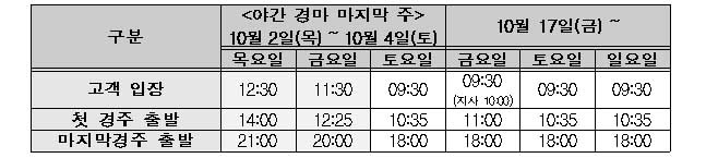 야간경마 종료 이후에는 10월 17일(금)부터 종전과 같이 정상 입장이 재개된다.