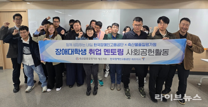 축산물품질평가원 제주지원(지원장 원광연)은 지난 27일 한국장애인고용공단 제주지사(지사장 현정훈)와 협력하여 장애인 취업 멘토링 및 사회공헌 나눔활동을 실시했다고 밝혔다.