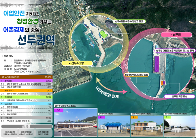박광근 인천시 해양항공국장은 “이번 어촌신활력사업 선정으로 선두항과 예단포항이 단순한 어항을 넘어 주민과 관광객이 함께 어우러지는 복합 해양공간으로 거듭날 것”이라며 “주민 참여를 바탕으로 지속가능하고 활력 있는 어촌을 조성하겠다”고 밝혔다.