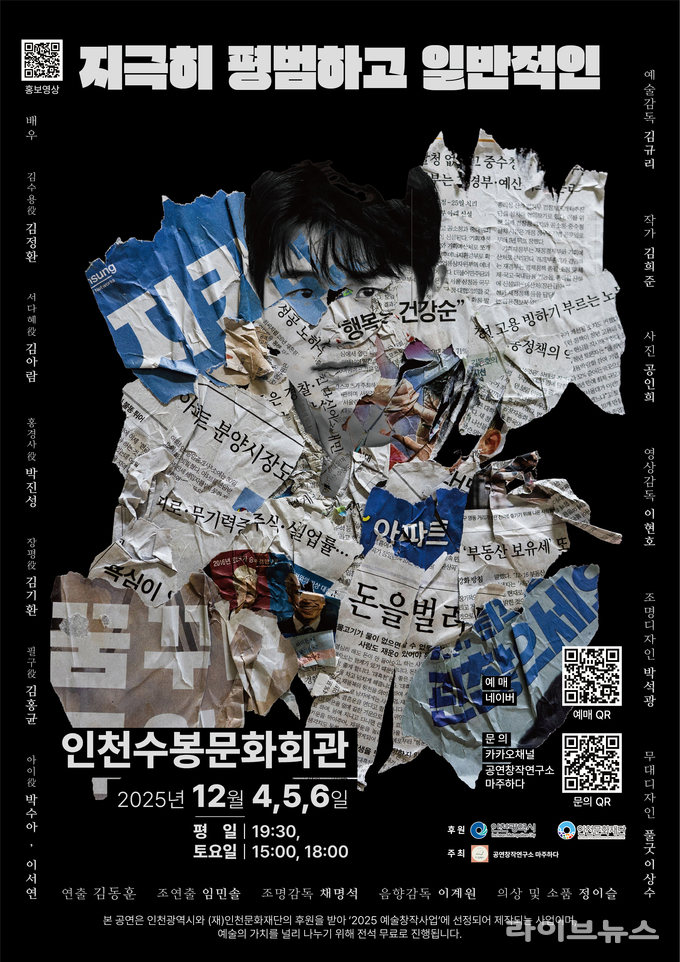 지극히 평범하고 일반적인은 인천문화재단 후원 ‘2025 예술창작사업’ 선정작으로, 전석 무료로 진행된다.