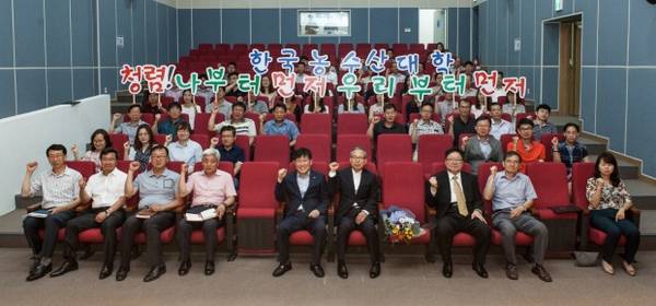 이번 퍼포먼스 행사에는 김남수 총장을 비롯하여 전 교직원이 참석했으며,참석자들은 피켓을 이용해 '한국농수산대학 청렴 나부터 먼저 우리부터 먼저'라는 글귀를 완성했고, 한농대 전 교직원이 이를 외치며 공직생활의 최우선의 가치인 ‘청렴’ 실천의 의지를 다졌다.