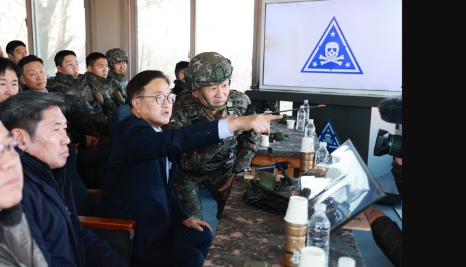 우원식 국회의장은 연말을 맞아 18일 육군 3사단 백골부대 전방 관측소(OP)를 방문하여 지형 및 경계작전현황 등을 보고받고 수색대대 부대원들과 오찬 간담회를 함께했다.