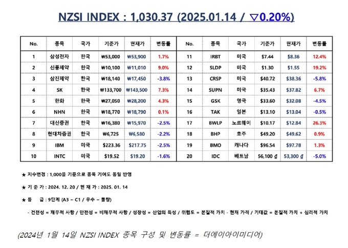 언론 통합 플랫폼이자 인터넷신문사 제보팀장을 운영 중인 더에이아이미디어는 1월 14일 NZSI INDEX 기반 시황 보고서를 발표했다.