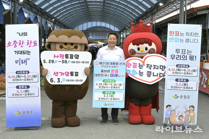 최영일 군수는 “사전투표에서 전국 1위를 달성할 수 있었던 것은 군민 여러분의 높은 관심과 적극적인 참여 덕분”이라며 “이 열기를 본투표까지 이어가 순창군이 다시 한번 전국 1위 투표율을 기록할 수 있도록 끝까지 최선을 다해 홍보하겠다”고 밝혔다.