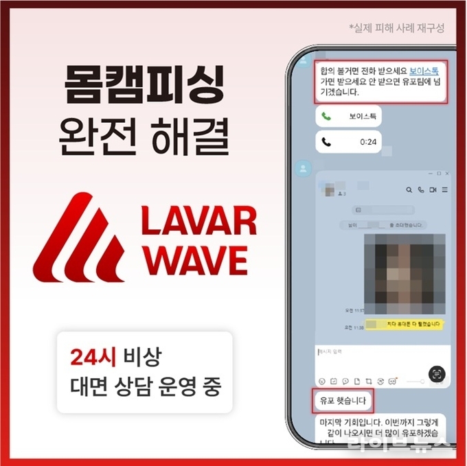 한편 라바웨이브는 추석 연휴 막바지인 현재도 24시간 몸캠피싱 피해 비상 대면 상담 체계를 가동하며 피해자들을 위한 적극적인 지원에 나서고 있다.
