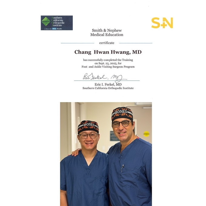 천안 지역 척추·관절 정형외과 위라이브병원의 황창환 대표원장이 최근 미국 UCLA 클리닉에서 진행된 정형외과 수술 교육 코스에 참여했다. 이번 교육은 정형외과 스포츠 의학 및 발목·발 수술 분야의 세계적인 권위자인 Eric I. Ferkel 교수가 주도한 프로그램으로, 고난도 수술 교정 기술 습득과 임상 역량 강화를 목표로 운영됐다.