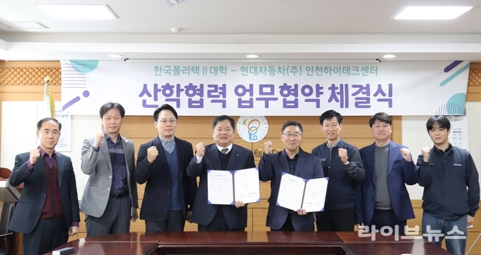 한국폴리텍대학 인천캠퍼스(학장직무대리 최민환)는 28일 대학 본관 세미나실에서 현대자동차(주) 인천하이테크센터(센터장 김형종)와 서비스 인력 양성 및 산학협력 강화를 위한 업무협약(MOU)을 체결했다.