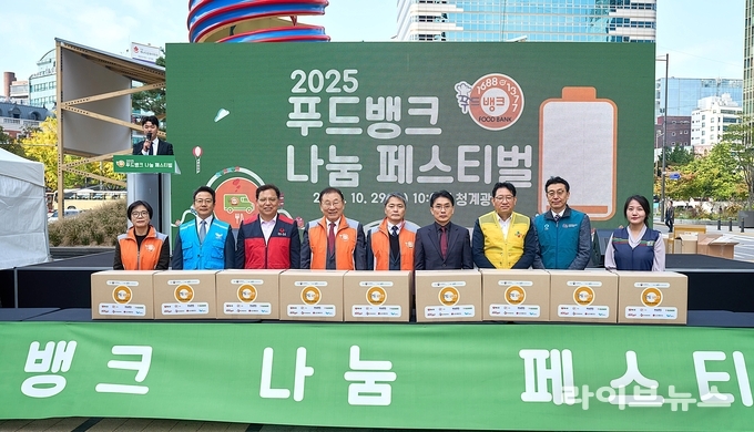 한국사회복지협의회 전국푸드뱅크는 29일 서울 청계광장에서 2025 푸드뱅크 나눔 페스티벌을 열고, 저소득층을 위한 사랑의 나눔 꾸러미 제작 및 기부 행사를 진행했다.
