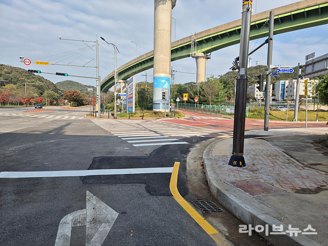 구체적으로 신호등과 가로등 이설, 가각부 보도 약 1m 축소 등의 조치를 통해 버스 차량이 안전하게 진입할 수 있도록 했다.