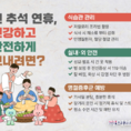 민족 최대 명절 추석을 앞두고 KH한국건강관리협회 인천지부는 건강하고 안전한 연휴를 보내기 위한 ‘온 가족 건강 지키미’ 수칙을 1일 발표했다. 홍은희 인천지부 원장은 “긴 연휴에는 평소와 다른 식습관과 생활 리듬으로 인해 건강 관리에 적신호가 켜질 수 있다”며 “특히 만성질환자는 평소 식습관과 약 복용을 철저히 유지하는 것이 중요하다”고 당부했다. 연휴 동안 건강 관리의 핵심은 식습관, 응급 대처, 명절증후군 예방 등 세 가지다. 연휴 식습관 관리 명절 음식은 고열량·고지방·고나트륨이 많아 체중 증가와 혈당·혈압 상승을 유발할 수 있다. 따라서 기름을 많이 쓰는 전이나 튀김 대신 찌거나 굽는 방식으로 조리하고, 나물은 무침으로 섭취하는 등 저칼로리 조리법을 활용해야 한다. 식이섬유가 풍부한 채소를 먼저 먹고 천천히 식사하는 습관도 과식을 예방하는 데 도움이 된다. 당뇨 환자는 떡, 한과 등 고탄수화물 식품 섭취를 주의하고, 고혈압 환자는 나트륨이 많은 음식을 피해야 한다. 야외 및 실내 응급 대처 성묘나 벌초 등 야외 활동 시에는 긴소매와 긴 바지, 양말을 착용하고 해충 기피제를 사용하는 것이 권장된다. 벌 쏘임 사고가 빈번하며, 입술·혀·목이 붓거나 호흡