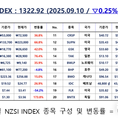 언론 통합 플랫폼이자 인터넷신문사 제보팀장을 운영 중인 더에이아이미디어는 9월 10일 NZSI INDEX 기반 시황 보고서를 발표했다. [편집자주] NZSI INDEX는 왜곡된 시장 정보에서 벗어나, 개인 투자자를 위한 공정하고 실질적인 투자 기준을 제시합니다. NZSI INDEX에는 미래를 설계할 수 있는 자본시장의 가능성이 담겨 있습니다. ★ 지수변경 : 1,000을 기준으로 종목 기여도 동일 반영 ★ 기 준 가 : 2024. 12. 20 / 1차 개편 : 2025. 04. 01 ★ 평가기준 : 20개 종목 X 5개 항목 (건전성, 안전성, 성장성, 위험도, 기대값) X 10등급 (A3 ~ D) 2025년 9월 10일, 국내 증시는 7거래일 연속 상승세를 이어갔다. 코스피 지수는 전 거래일 대비 1.67% 상승한 3,314.53포인트로 마감했고, 코스닥 지수는 0.99% 오른 833.00포인트를 기록했다. 거래대금은 코스피 약 10조 9천억 원, 코스닥 약 6조 6천억 원으로 전일과 유사한 수준을 유지했으며, 시가총액은 코스피 2,709조 2천억 원, 코스닥 432조 1천억 원으로 나타났다. 대형주 중심의 매수세가 뚜렷했고, 기관과 외국인의 순매수가 지수
