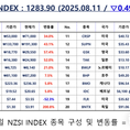 언론 통합 플랫폼이자 인터넷신문사 제보팀장을 운영 중인 더에이아이미디어는 8월 11일 NZSI INDEX 기반 시황 보고서를 발표했다. [편집자주] NZSI INDEX는 왜곡된 시장 정보에서 벗어나, 개인 투자자를 위한 공정하고 실질적인 투자 기준을 제시합니다. NZSI INDEX에는 미래를 설계할 수 있는 자본시장의 가능성이 담겨 있습니다. ★ 지수변경 : 1,000을 기준으로 종목 기여도 동일 반영 ★ 기 준 가 : 2024. 12. 20 / 1차 개편 : 2025. 04. 01 ★ 평가기준 : 20개 종목 X 5개 항목 (건전성, 안전성, 성장성, 위험도, 기대값) X 10등급 (A3 ~ D) 2025년 8월 11일, 국내 증시는 혼조세를 보였다. 코스피 지수는 전 거래일 대비 0.10% 하락한 3,206.77포인트로 마감하며 소폭 약세를 나타냈다. 반면 코스닥 지수는 0.32% 상승한 811.85포인트로 장을 마쳤다. 유가증권시장의 거래대금은 약 11조 1천억 원, 코스닥 시장은 약 6조 7천억 원으로 전일과 비슷한 수준을 유지했다. 시가총액은 코스피가 2,620조 원으로 소폭 감소하였고, 코스닥은 417조 2천억 원으로 증가하였다. 글로벌 증시는 하