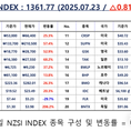 언론 통합 플랫폼이자 인터넷신문사 제보팀장을 운영 중인 더에이아이미디어는 7월 23일 NZSI INDEX 기반 시황 보고서를 발표했다. [편집자주] NZSI INDEX는 왜곡된 시장 정보에서 벗어나, 개인 투자자를 위한 공정하고 실질적인 투자 기준을 제시합니다. NZSI INDEX에는 미래를 설계할 수 있는 자본시장의 가능성이 담겨 있습니다. ★ 지수변경 : 1,000을 기준으로 종목 기여도 동일 반영 ★ 기 준 가 : 2024. 12. 20 / 1차 개편 : 2025. 04. 01 ★ 평가기준 : 20개 종목 X 5개 항목 (건전성, 안전성, 성장성, 위험도, 기대값) X 10등급 (A3 ~ D) 2025년 7월 23일, 국내 증시는 전날의 하락세를 극복하고 상승세 전환했다. 코스피 지수는 전 거래일보다 0.44% 오른 3,183.77포인트로 마감했고, 코스닥 지수는 0.07% 상승한 813.56포인트로 장을 마쳤다. 대형주 위주의 강세 흐름이 지수를 견인했고, 기관과 외국인의 순매수도 상승세에 힘을 보탰다. 이날 코스피 시장의 거래대금은 약 11조 원, 코스닥 시장은 약 6조 9천억 원으로 전일 대비 소폭 증가했다. 시가총액은 코스피가 2,594조 원,