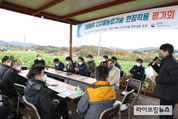 11일 충남 보령시 청소면 신송리 배추 농가에서 농촌진흥청 국립원예특작과학원, 국립농업과학원, 디지털농업추진단은 '가을배추 디지털 농업 기술 현장 적용 평가회'를 열고 드론 방제와 비료주기 기술 등을 선보였다. 이번에 선보인 기술들은 추가 연구를 통해 보강한 뒤 농가에 보급할 계획이다. <사진=농촌진흥청>