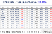 언론 통합 플랫폼이자 인터넷신문사 제보팀장을 운영 중인 더에이아이미디어는 9월 30일 NZSI INDEX 기반 시황 보고서를 발표했다. [편집자주] NZSI INDEX는 왜곡된 시장 정보에서 벗어나, 개인 투자자를 위한 공정하고 실질적인 투자 기준을 제시합니다. NZSI INDEX에는 미래를 설계할 수 있는 자본시장의 가능성이 담겨 있습니다. ★ 지수변경 : 1,000을 기준으로 종목 기여도 동일 반영 ★ 기 준 가 : 2024. 12. 20 / 1차 개편 : 2025. 04. 01 ★ 평가기준 : 20개 종목 X 5개 항목 (건전성, 안전성, 성장성, 위험도, 기대값) X 10등급 (A3 ~ D) 2025년 9월 30일, 국내 증시 코스피 지수는 전 거래일 대비 0.19% 내린 3,424.60포인트로 마감했고, 코스닥 지수도 0.56% 하락한 841.99포인트로 장을 마쳤다. 거래대금은 코스피 약 11조 원, 코스닥 약 6조 7천억 원 수준으로 전일과 유사한 흐름을 보였고, 시가총액은 코스피 2,800조 3천억 원, 코스닥 437조 7천억 원으로 집계됐다. 상승 종목이 많아졌고, 중·소형주 중심 매수 흐름이 복귀한 모습도 확인된다. 글로벌 시장 미국 뉴욕