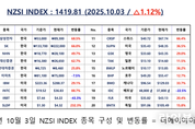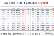 언론 통합 플랫폼이자 인터넷신문사 제보팀장을 운영 중인 더에이아이미디어는 10월 3일 NZSI INDEX 기반 시황 보고서를 발표했다. [편집자주] NZSI INDEX는 왜곡된 시장 정보에서 벗어나, 개인 투자자를 위한 공정하고 실질적인 투자 기준을 제시합니다. NZSI INDEX에는 미래를 설계할 수 있는 자본시장의 가능성이 담겨 있습니다. ★ 지수변경 : 1,000을 기준으로 종목 기여도 동일 반영 ★ 기 준 가 : 2024. 12. 20 / 1차 개편 : 2025. 04. 01 ★ 평가기준 : 20개 종목 X 5개 항목 (건전성, 안전성, 성장성, 위험도, 기대값) X 10등급 (A3 ~ D) 2025년 10월 3일은 개천절로 국내 증시는 휴장했다. 미국 뉴욕 증시는 강약 혼조 속 상승 흐름을 보였다. 다우존스 산업평균지수는 0.51% 상승해 46,758.28포인트로 마감했고, 기술주 중심의 나스닥 종합지수는 0.28% 하락해 22,780.51포인트를 기록했다. 공정 투자 기준형 지수 NZSI INDEX는 이날 1.12% 상승한 1,419.81포인트로 마감하며 3거래일 연속 상승 흐름을 이어갔다. 이 지수는 한국과 글로벌 대표 종목의 실질 수익률을 반영