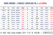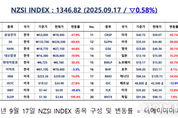 언론 통합 플랫폼이자 인터넷신문사 제보팀장을 운영 중인 더에이아이미디어는 9월 17일 NZSI INDEX 기반 시황 보고서를 발표했다. [편집자주] NZSI INDEX는 왜곡된 시장 정보에서 벗어나, 개인 투자자를 위한 공정하고 실질적인 투자 기준을 제시합니다. NZSI INDEX에는 미래를 설계할 수 있는 자본시장의 가능성이 담겨 있습니다. ★ 지수변경 : 1,000을 기준으로 종목 기여도 동일 반영 ★ 기 준 가 : 2024. 12. 20 / 1차 개편 : 2025. 04. 01 ★ 평가기준 : 20개 종목 X 5개 항목 (건전성, 안전성, 성장성, 위험도, 기대값) X 10등급 (A3 ~ D) 2025년 9월 17일, 국내 증시는 숨고르기 국면에 접어든 모습이었다. 코스피는 전 거래일 대비 1.05% 하락해 3,413.40포인트로 마감했으며, 코스닥 역시 0.74% 내린 845.53포인트를 기록했다. 거래대금은 코스피 약 10조 9천억 원, 코스닥 약 6조 6천억 원으로 전일과 유사했고, 시가총액은 코스피 2,790조 6천억 원, 코스닥 438조 7천억 원 수준이었다. 뉴욕 증시에서는 다우존스 산업평균지수가 0.57% 상승한 46,018.32포인트로 마