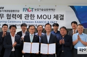 실용화재단·농기계조합, 업무협력 MOU 체결 해외 수출 지원사업·스마트팜 사업 발전 협조체계 구축 농업기술실용화재단(이사장 박철웅)은 16일 충남 천안 소재 한국농기계글로벌센터에서 한국농기계공업협동조합(이사장 김신길)과 농업기계 및 스마트팜 분야 해외업무협력 활성화 등을 위한 업무협약(MOU)을 체결했다고 밝혔다. 이번 협약식에는 재단 박철웅 이사장과 농기계조합 김신길 이사장, 재단 창업성장본부 홍영호 본부장, 스마트농업본부 유영선 본부장, 농기계조합 김홍철 전무이사 등 관계자 10여 명이 참석했다. 이번 업무협약은 양 기관이 상호 유기적인 협력체계를 구축하고 상생협력 사업을 추진함으로써 농촌진흥청에서 개발한 첨단 농기계 및 스마트팜 관련 기술을 활용하여 개발된 제품 등의 국내·외 판로 개척을 지원하고자 추진됐다. 협약체결에 따라 양 기관은 ▲농업기계 및 스마트팜 분야 해외 수출 지원사업에 관한 공동협력 ▲해외농업 전시·박람회 한국관 운영을 위한 공동협력 ▲스마트팜 사업발전을 위한 공동협력 ▲기타 협약기관의 공동 관심사항 및 필요로 하는 사항에 대해 상호 협조해 나가기로 했다. 재단 박철웅 이사장은 “재단은 지난 ’15년부터 농기계 수출 촉진을 위한 해외테스