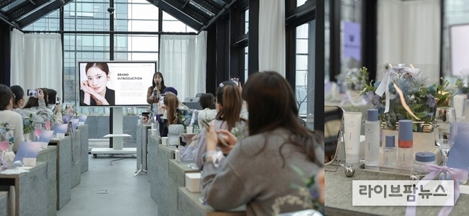 행사장은 히알루겐과 인아웃의 컨셉에 맞게 퍼플, 화이트, 그레이 색감으로 화려하게 연출하여 미즈온만의 고급스러움을 더했다.