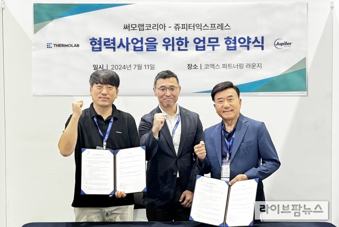 이번 협약식은 지난 11일 BIX KOREA 2024 현장에서 진행됐으며, 써모랩코리아 최석 대표와 쥬피터익스프레스 추동화 대표를 비롯, 쥬피터그룹 노리유키 후지타 CEO 등 양사 관계자들이 참석했다.