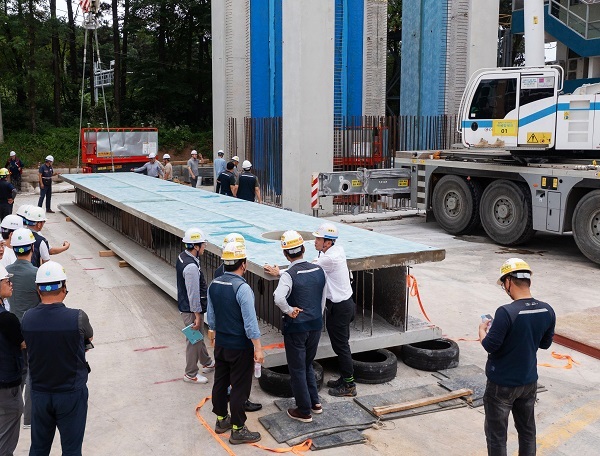 한편 이날 시연회에서는 더블월 발주처 및 설계사, 감리단 등 여러 전문가들이 참여한 가운데 15M 더블월 제품 개발과정과 실험 결과 등의 설명회를 진행했다. 또한 현장에서 시공 과정을 둘러보며 구조적 안전성과 높이 15M까지 벽체 설치 단계에서 휨 변형 등을 최소화해 안전하게 시공할 수 있는 것을 한눈으로 확인하는 등 시공∙품질 우수성에 대해 검증하는 자리를 가졌다.