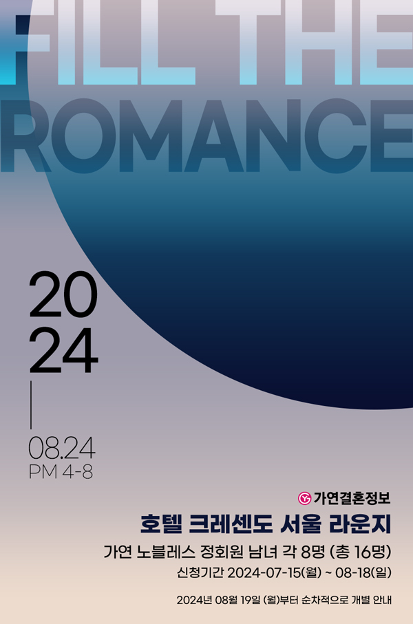 가연은 오는 24일(토) 선정릉역 인근의 ‘호텔 크레센도 서울’ 라운지에서 8월 미팅파티 ‘Fill The Romance’(필 더 로맨스)를 개최할 예정이다.