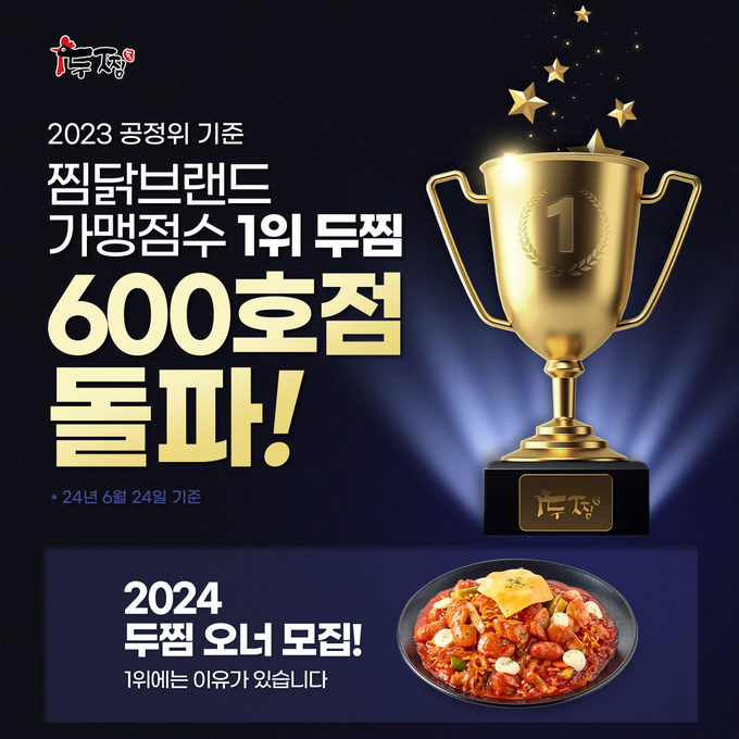 2017년 가맹사업을 시작한 두찜은 8월 8일 기준 606개 가맹점을 운영 중이다. “찜닭 프랜차이즈 가운데 600호점 돌파는 두찜이 최초”라고 업체 측은 밝혔다.
