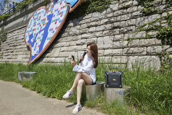 유무선 마이크를 연결해 노래방, 버스킹 공연 등에 활용할 수 있는 ‘버스킹DJ’는 2대를 무선 연결하면 소리를 2채널로 분리 출력해 풍부한 입체음향을 선사할 수 있다. 모바일 기기에 다양한 노래방 앱을 설치해 함께 활용하면 어느 곳에서나 노래방 시스템을 즐길 수 있다.