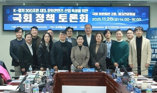 조국혁신당 김재원 국회의원(비례대표, 국회 문화체육관광위원회)은 11월 28일(금) 국회에서 ‘K-컬처 300조원 시대, 문화콘텐츠 산업 육성을 위한 정책토론회’를 개최했다. 이번 토론회는 김재원 의원을 비롯해 문화체육관광부, 한국콘텐츠진흥원 등 관계부처 및 유관기관, 산업계ㆍ학계 전문가 등이 참석했다. 참석자들은 우리나라 문화기술 R&D의 현황을 점검하고, 콘텐츠 산업기술 패러다임의 변화와 주요 성과, 지속 성장을 위한 R&D 전략 및 사례를 공유했다.