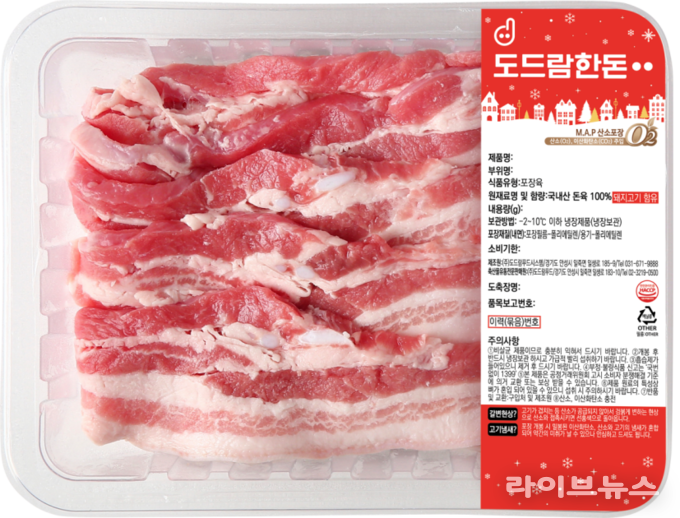 이번 겨울 에디션은 도드람한돈 포장(MAP) 패키지에 겨울과 크리스마스를 모티브로 한 디자인을 적용해, 따뜻한 연말 분위기를 한층 더했다. 눈송이가 흩날리는 겨울 풍경과 은은하게 불빛이 켜진 마을 풍경을 도드람의 브랜드 컬러 레드 기반으로 표현해 계절감을 직관적으로 전하면서 포근한 감성을 전달한다.