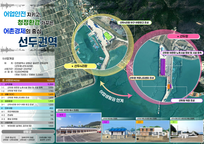 인천시는 어촌 신활력 증진, 어항 기반시설 확충, 어선 사고 예방, 수산자원 조성 등 4대 핵심 분야에 총 260억 원의 예산을 투입해 어업인의 삶의 질을 높이고 지역 경제 활성화에 나선다고 밝혔다.