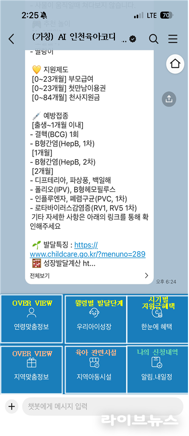 시는 향후 ‘AI 인천육아코디’에 인공지능과 자동화 프로그램을 단계적으로 연동해 부모의 질문에 개인화된 정보를 제공하고, 일정 알림 등 부가 기능도 순차적으로 확대할 계획이다.