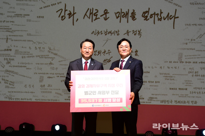 특히 ‘생생톡톡 애인(愛人) 소통’ 행사에서는 경제자유구역 지정을 염원하는 군민들의 뜻이 담긴 서명부가 유정복 시장에게 전달됐다.