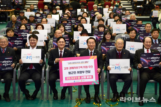 군민 서명부 전달은 강화의 변화와 도약을 바라는 지역사회의 강한 의지를 상징적으로 보여주는 장면으로 평가됐다.
