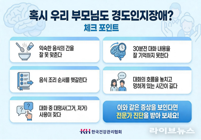 부모님의 ‘깜빡’이 단순한 노화 현상으로 여겨지기 쉽지만, 경우에 따라서는 치매 전 단계인 경도인지장애일 수 있어 주의가 요구된다.